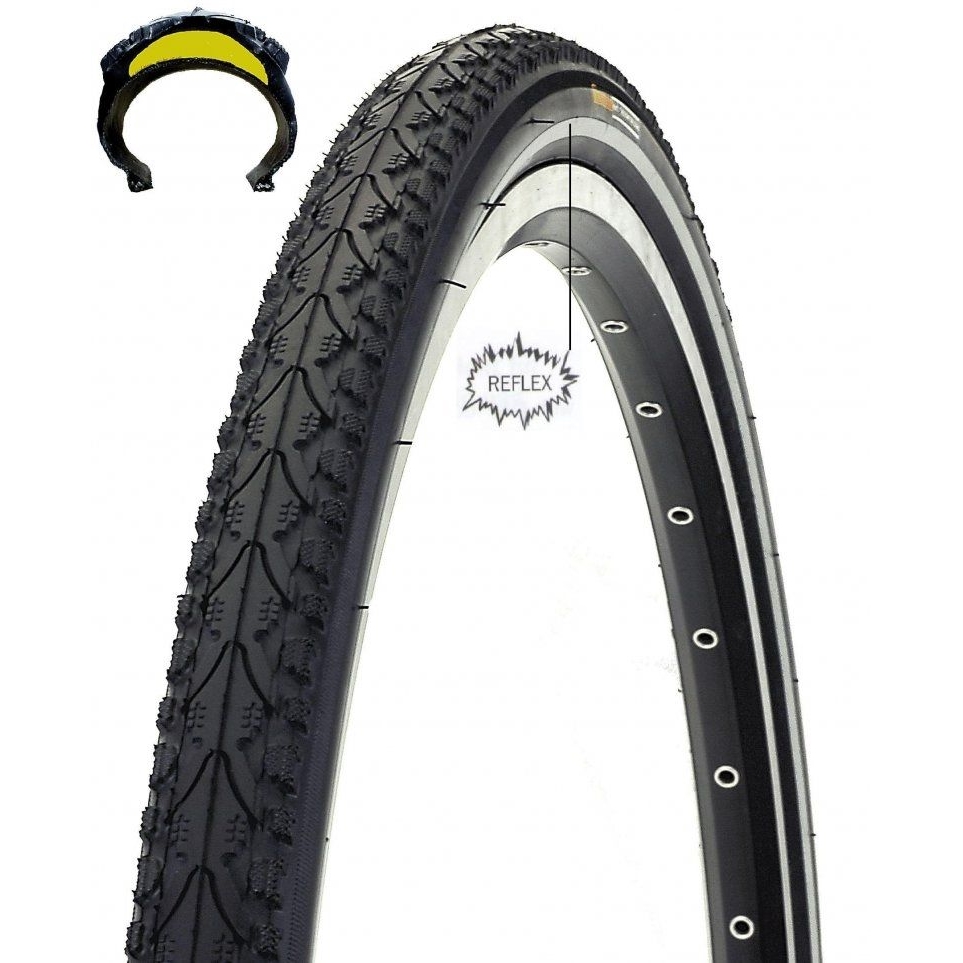 Fahrradreifen Kenda 26x1,75 K-935 KHAN mit Reflexstreifen ist ein hochwertiger Reifen mit langer Lebensdauer. K-Shield – Spezialschutzgürtel aus Keramik und Aramid zum Schutz gegen Durchstiche. Dieser Reifen eignet sich für den ganzjährigen Einsatz auf trockenen und feuchten Oberflächen. Reifen Kenda 26x1,75 K-935 kann man dank seinem Muster sowohl im Gelände als auch auf befestigten Straßen nutzen. Reflexstreifen an der Seite sorgt für erhöhte passive Sicherheit des Fahrers, insbesondere unter schlechten Sichtverhältnissen. Kenda als der größte Hersteller von Fahrradreifen und Schläuchen in der Welt, garantiert eine Top-Qualität, belegt durch langjährige Entwicklung und viele zufriedene Kunden.