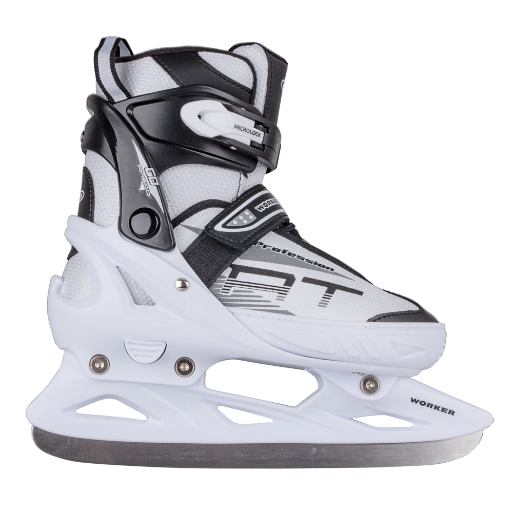 Damen Schlittschuhe WORKER Patino sprechen dank ihrem sportlichen Design und dezenter Verarbeitung jede Frau und Mädchen an. Per Knopfdruck an der Seite lassen sie sich im Handumdrehen jeder Größe anpassen. Innensohle Comfort Fit ist so ausgelegt, um natürlich, leicht zu wirken, Schweiß zu absorbieren und Druckstellen zu eliminieren. Thermo Fit System schützt Sie dann vor Kälte. Der hochwertige Schlittschuh verfügt über Kunstlaufschiene aus zertifiziertem Stahl, was tolle Laufeigenschaften garantiert. Dank einigen Schnallen und Schnürung lässt sich der Schuh einfach befestigen, um den Fuß zu fixieren. Zudem System Safety Ankle hält den Knöchelbereich in richtiger und sicherer Position.