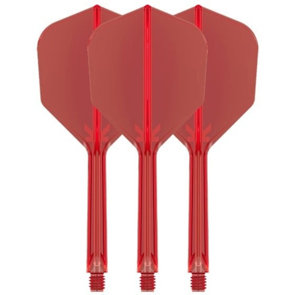 Das patentierte Twist-System von Target minimiert den Rückprall des Darts, wenn er von einem anderen getroffen wird. Die Staffeln haben außerdem eine verstärkte Spitze, die ein Brechen des Flügels bei einem Treffer durch einen anderen Pfeil verhindert.